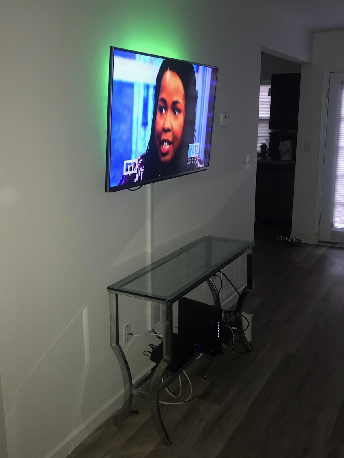 This installation is ideal for rental properties or people who want their cords hidden and organized in a clean manner. This is done without cutting holes in to the wall.