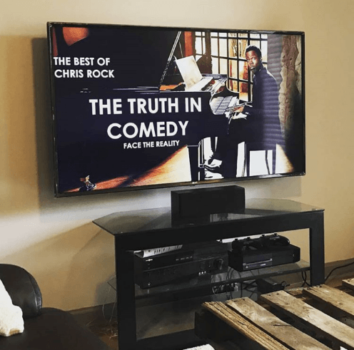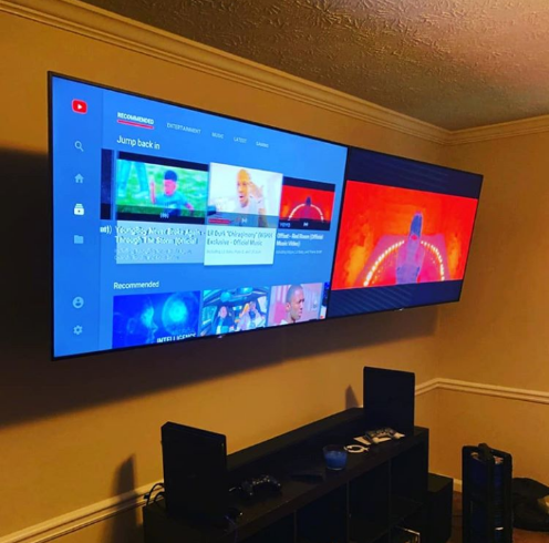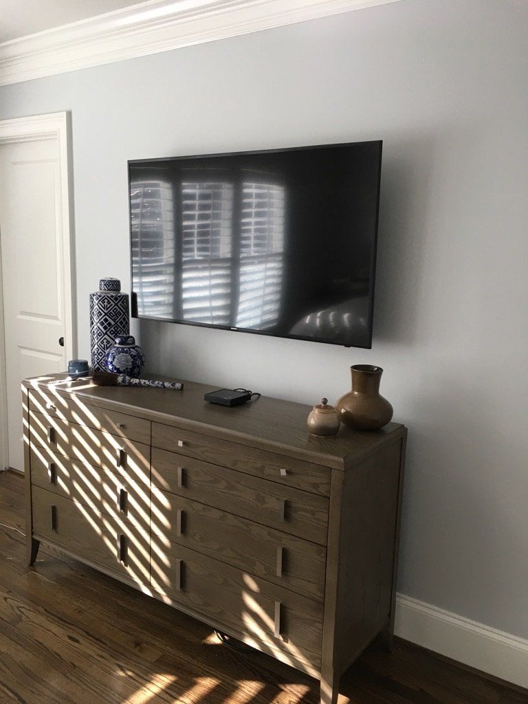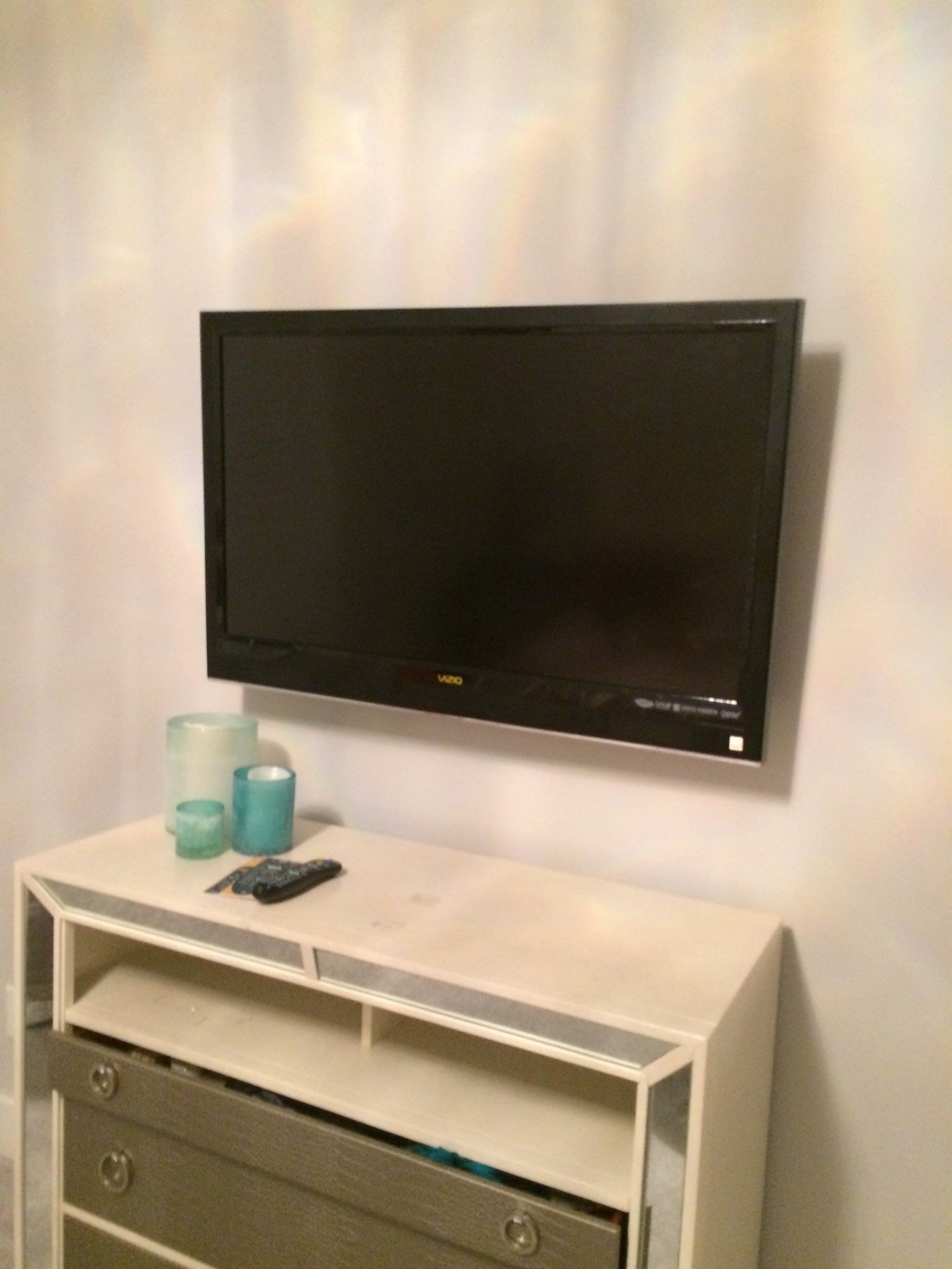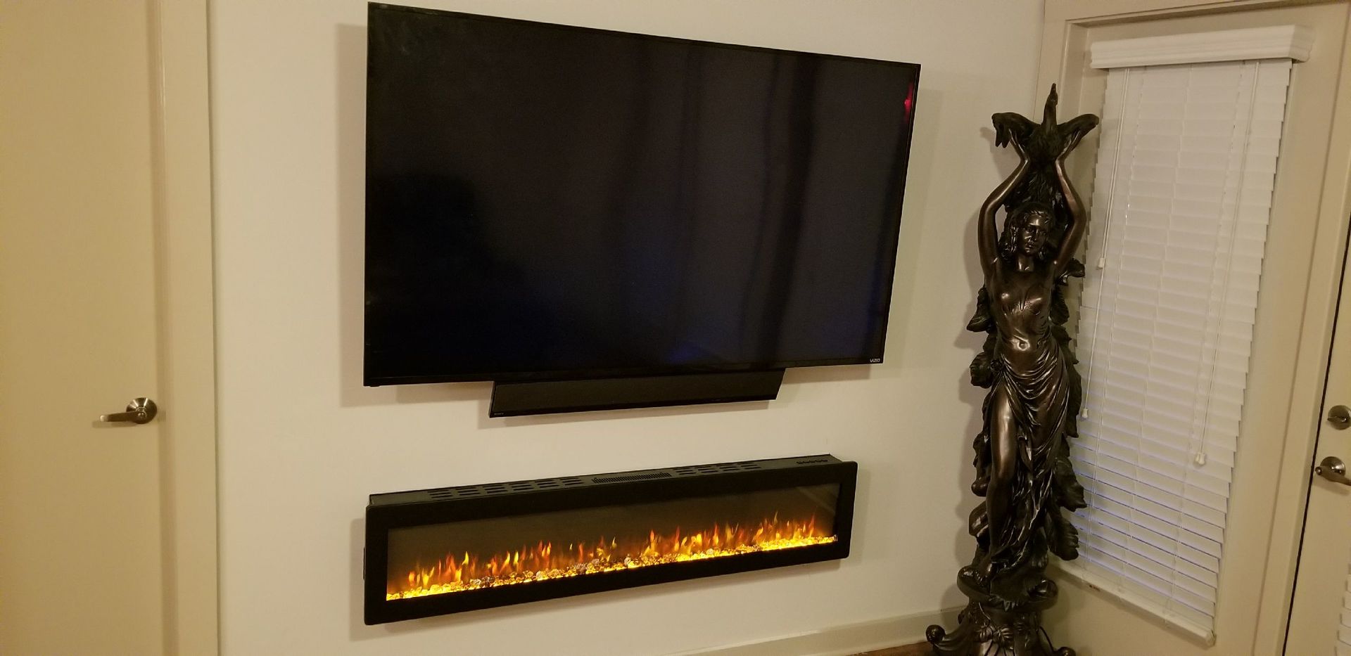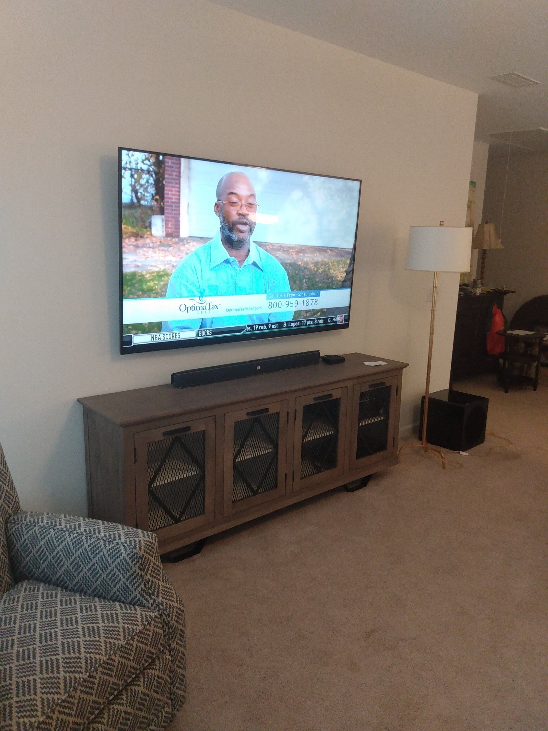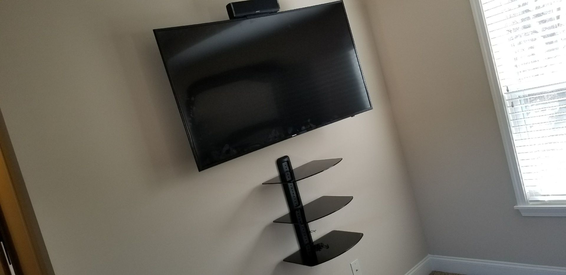 This set up is ideal for clients who want their TV on the wall. But, also will have a TV stand or entertainment center for their cable box, internet modem, game system, or etc.